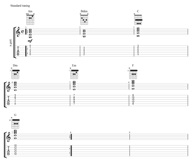Harmonisation de la gamme Majeure en Triades à la guitare :